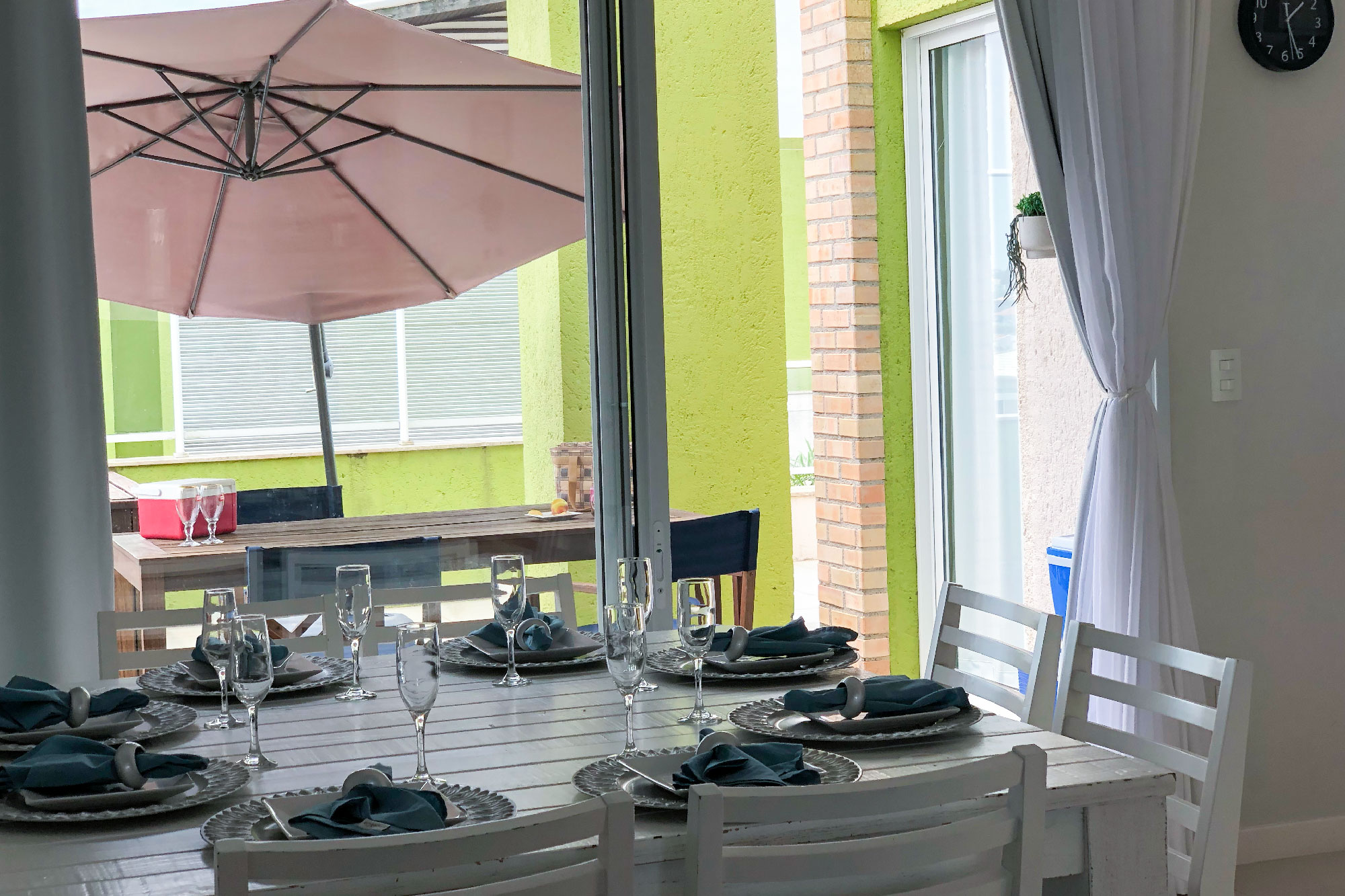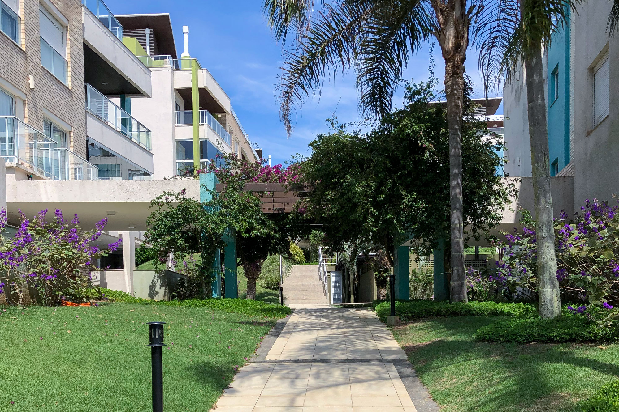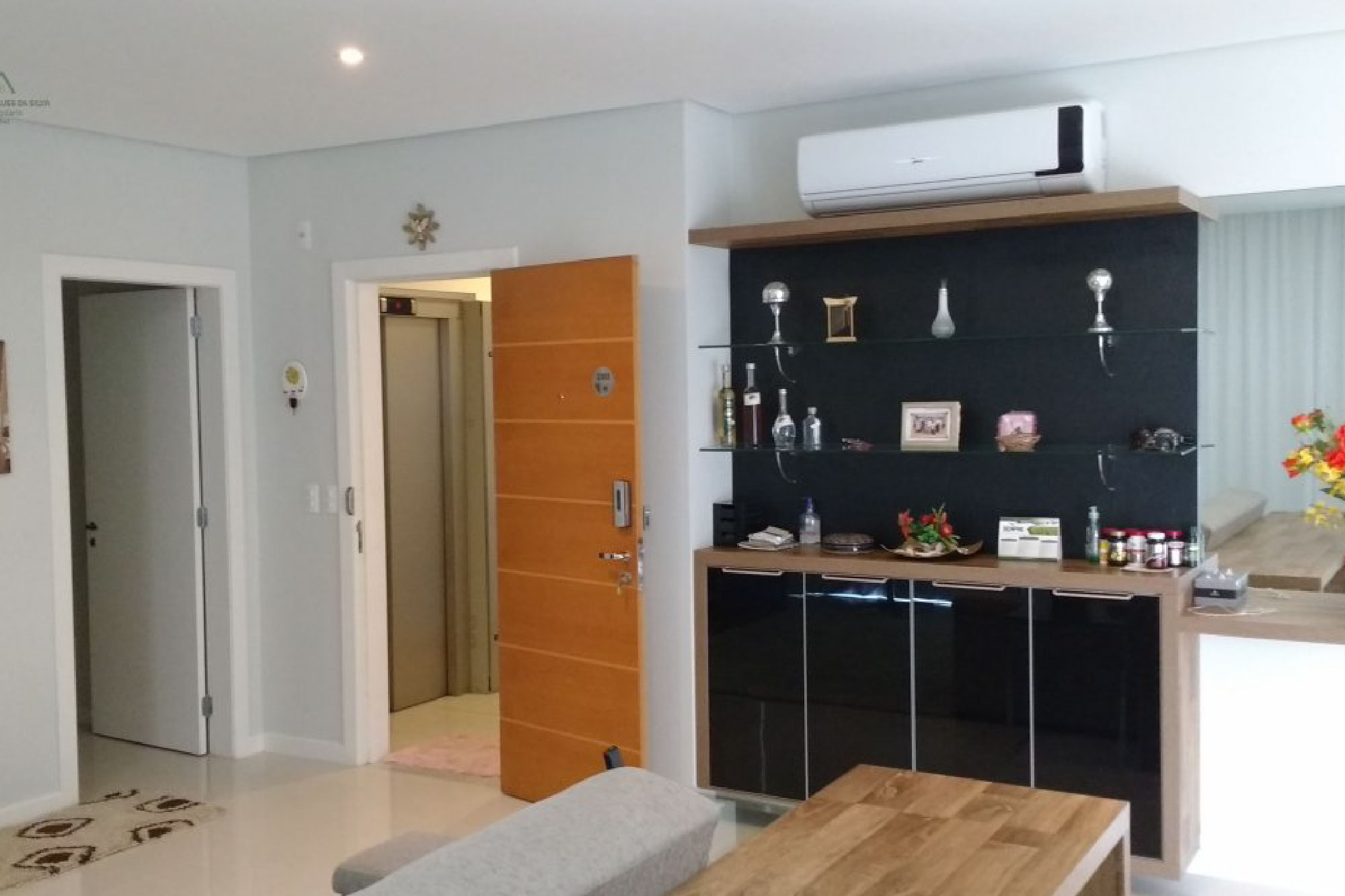 O apartamento fica próximo à praia do Santinho, ao norte da ilha de Florianópolis, na Estrada Vereador Onildo Lemos 1999, e possui um total de 399,47m2.
